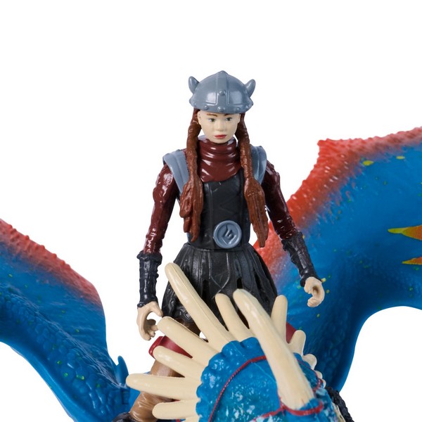 Készülj fel a bevetésre Hibbant-sziget leggyorsabb párosával! Ez az akciófigura készlet a tűzrőlpattant Astridot és hűséges társát, a pompás Viharvirágot (Stormfly) hozza el a rajongóknak. A halálos Siklósárkány és lovasa készen állnak, hogy bevegyék az eget és megvédjék a sárkányok békéjét. A csomag tartalma: 1 db Viharvirág (Siklósárkány) figura lövő funkcióval. 1 db Astrid akciófigura. 1 db Kilőhető lövedék. 1 db Viking harci fejsze (Astrid kiegészítője). Méretek: A sárkány hossza kb. 20 cm