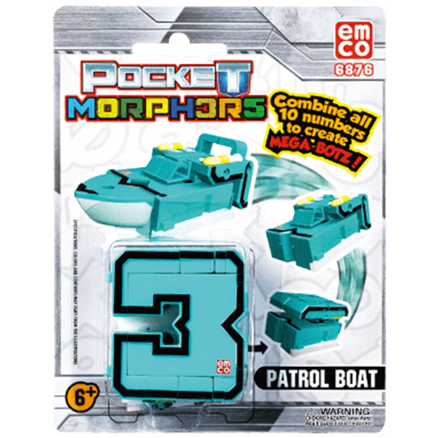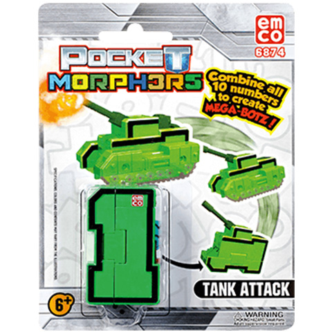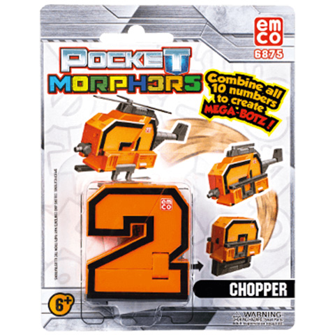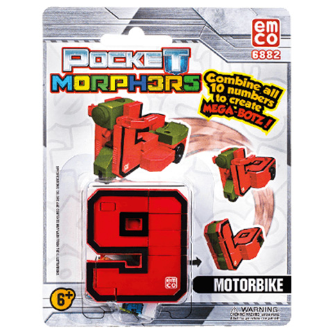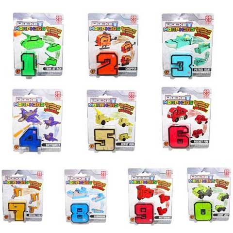 Pocket Morphers a számok elképesztő dimenziójából származik. Minden szám izgalmas járműre alakítható át. Csak néhány mozdulatra van szükség és a szám máris átalakul a kívánt járműre. Szerezd meg az összes számot 0-tól 9-ig a Pocket Morphers-től és leplezd le, hogy mit rejtegetnek a számok. Ha átalakítod az összes számot és egyesíted őket, akkor egyetlen nagy robotot alkotnak. Az ár egy termékre vonatkozik, rendeléskor a megjegyzés rovatban tüntesd fel, hogy melyik színűt szeretnéd, ellenkező esetben véletlenszerűen küldünk egyet!