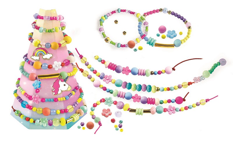Kreatív készlet színes karkötők készítéséhez, egyszarvú és szivárvány alakú függődíszekkel. A játék tartalmaz: többszínű, különböző formájú gyöngyöket, kis függődíszeket, mini pomponokat és színes gumiszalagokat. Sz  ...    Részletek