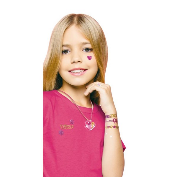 Glitza Fashionista csillámtetkó Party ékszerek. Fedezd fel a csillámtetkót legújabb generációját! A Glitza Fashionista szettek minden szükséges ezközt tartalmaznak, amelyek segítségével az ifjú divatdiktátorok megvalósíthatják legmerészebb ötleteiket. A tetoválásokon túl ragyogó ékszermatricákkal, és kiegészítőkkel kísérletezhetnek többféle stílusban. Díszíts a Glitza Fashionista készletekkel, és tuti, hogy nem maradsz észrevétlen! A Glitza csomagok mindegyike hipoallergén, állatkísérlet nélkül készültek, minden kozmetikai kritériumnak eleget tesznek, továbbá biztonsággal használhatók bőrfelületen és ékszerkiegészítőkön.
