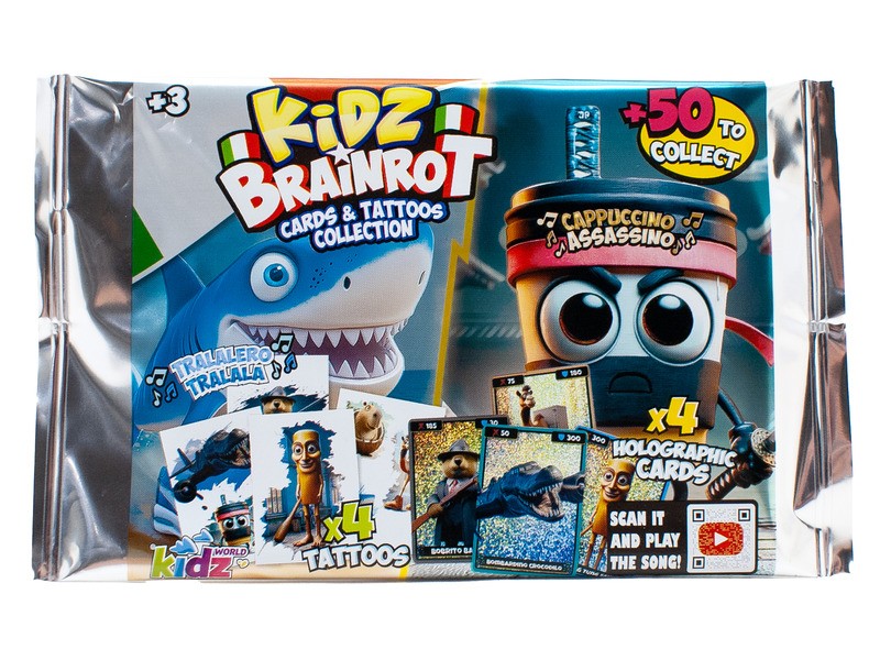 A Brainrot Kártyák és Tetoválások Kollekció a tökéletes gyűjtői élmény a merész karaktereket és a kreatív szórakozást kedvelő gyerekek számára! Minden csomag 4 élénk tetoválást és 4 szemet gyönyörködtető holografikus kártyát tartalmaz, amelyeken olyan rajongók kedvenc karakterei láthatók, mint Roberto, Branzino Krokodil és Tuna Szaurusz. Több mint 50 egyedi gyűjthető mintával ez a készlet a gyerekek körében az egyik legmenőbb trendet követi.