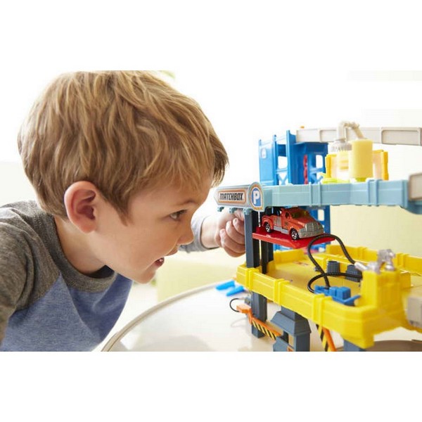 Minden feladatra van egy megfelelő jármű. Ha egy kisautód lerobbant segíthet a vontató, ha a kalandozások során koszos lett a terepjáró, akkor az autómosóra lehet szükséged. Ez és rengeteg egyéb autós kaland vár a 4 szintes Matchbox garázsban. A működő lifttel a legfelső szintre szállíthatod járgányodat és a spirális rámpán lehajtva négy szinten keresztül kényeztetheted kisautóidat. Lemoshatod, megtankolhatod a benzinkúton vagy felemelheted az emelővel, hogy ellenőrizd állapotát. A készlet egy Matchbox vontató kisautót tartalmaz, a többi kisautó külön kapható. A színek és a díszítések eltérhetnek. A készlet nem minden Matchbox járművel kompatibilis.