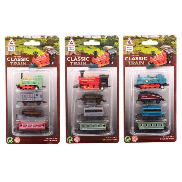 Fém Vonat Kocsikkal 4 db-os Szett, többféle