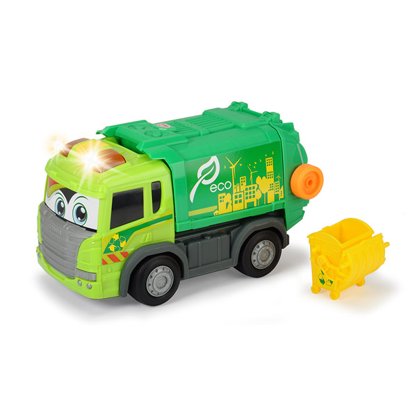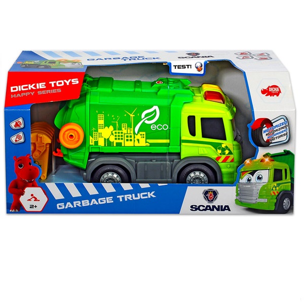 Ez a Happy Scania Kukásautó segít a legkisebbeknek is megismerkedni az autók világával. A nyál-álló és színtartó jármű teljesen bababarát, hiszen sarkai lekerekítettek, így a vele való játék teljesen biztonságos. Fény és hang effektek teszik a játékot még szórakoztatóbbá. 2 éves kortól ajánljuk, szülői felügyelet mellett. A kukásautó mérete: 25 cm. A játék 3 db 1,5 V AA elemmel (ceruzaelem) működik, melyet a csomagolás tartalmaz.