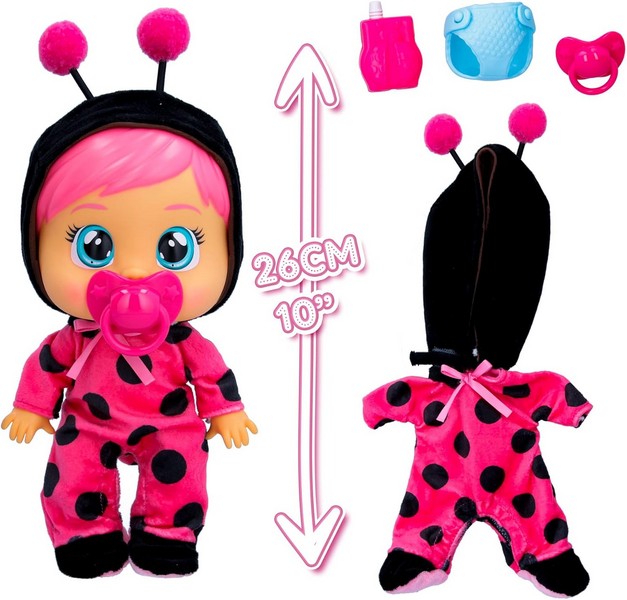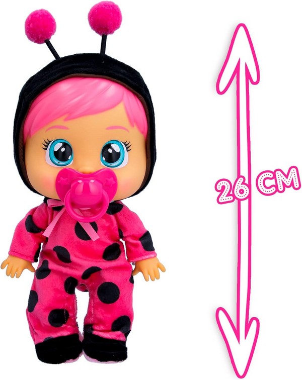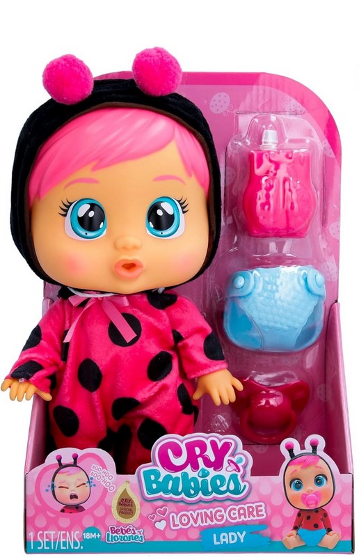 A Cry Babies Loving Care babák nemcsak azért különlegesek, mert színes hajuk és cuki pizsamájuk van, hanem azért is, mert valódi könnyeket sírnak. A gyerekeknek csak meg kell nyomniuk a fejecskéjét, és a baba rögtön könnyezni kezd. A csomag egy cumit és egy cumisüveget tartalmaz, hogy a "kis anyukák" meg tudják etetni a babócát. A baba pizsamája levehető. A babával való játék fejleszti a gyerekek képzeletét, fantáziáját és kommunikációs készségét, emellett segítségével a kislányok sokat tanulhatnak a gondoskodásról és a felelősségvállalásról is. A baba magassága: 26 cm