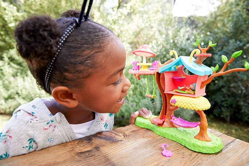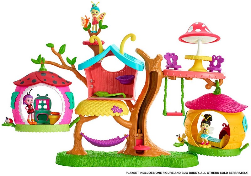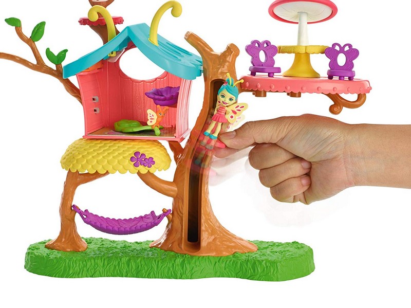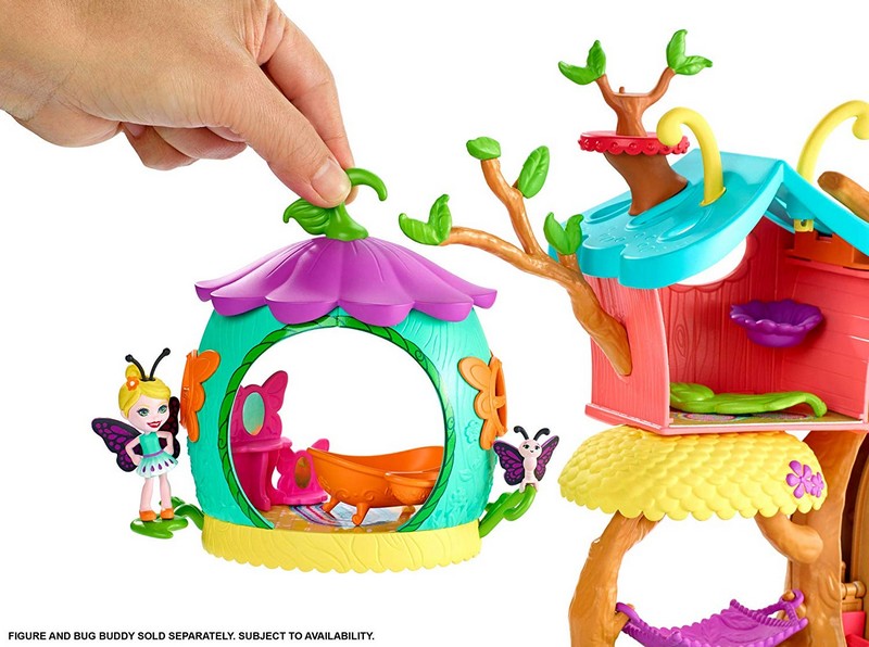 Varázslatos mini pillanatokat élhetsz át ezekkel a picuri Enchantimals babákkal és tematizált játékszettekkel. Ez a Pillangó házikó játékszett Baxi Butterfly babát (5 cm), Wingrid pillangó figurát, picuri babaállványt, több szintes játszóházat és kiegészítőket tartalmaz. Az első szinten található függőágyon és hintán a bogárbarátok egyszerre kapcsolódhatnak ki. Az Enchantimals babák felliftezhetnek a fatörzs mentén az emeleti teraszon kialakított étkezőhöz (gombakalap asztallal és két székkel) és hálószobához (két ággyal). Rácsíptetheted Wingrid pillangót vagy bármelyik bogárfigurát (külön megvásárolhatók) a ház tetején található rugóra - ha megpörgeted, kezdődhet is a libegő-lobogó móka! Csatlakoztathatod a többi Petal Park játékszettet és járművet is ehhez a játszóházhoz, hogy még nagyobb legyen a zsongás! Összegyűjtheted mindet, hogy egy egész Enchantimals világot építhess. A Matteltől.