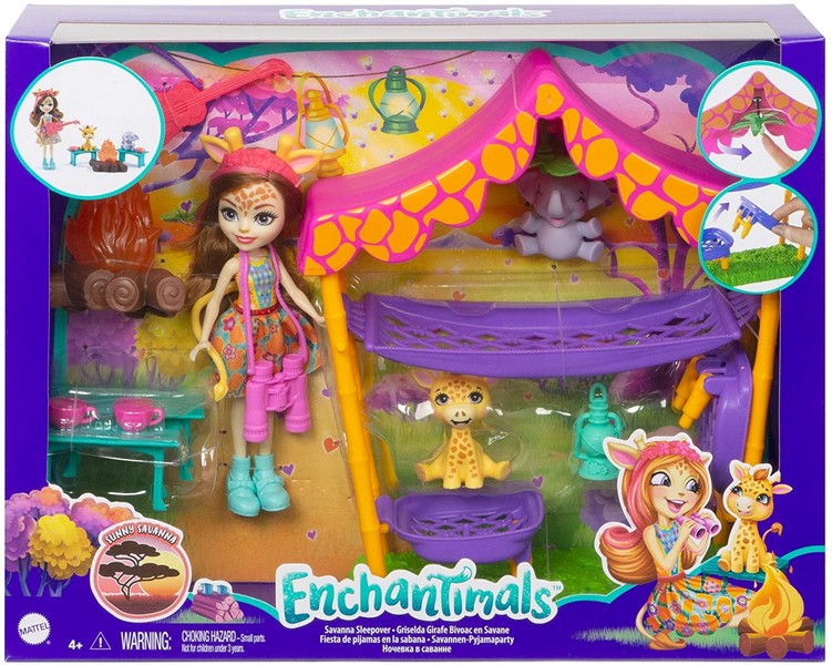 Mit szólnátok egy egzotikus pizsamapartihoz a szavanna csillagos ege alatt? Ezzel a készlettel egy izgalmas, kempingezős kalandban lehet részetek az elbűvölő Gillan zsiráf baba, kis barátaival a babazsiráffal és elefánttal. A játékszet  ...    Részletek