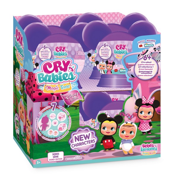 A Cry Babies Magic Tears babák, most Disney figuraként térnek vissza! Fedezd fel kedvenc Disney karaktereit most Cry Babies Magic Tears karakterekként. Daisy, Mickey egér, Olaf, Bambi, Micimackó, Dumbo és Minnie egér. Gyűjtsd össze mind a 6 karaktert! Megtalálod Minnie egeret, a ritka karaktert? Adj nekik vizet a varázspalackjukkal, nyomd meg a pocakjukat, és valódi könnyeket sírnak!
