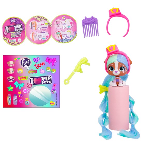 Akárcsak bálványaik, a VIP PETS, a Mini Fans is követik a legújabb trendet: a Bow Power-t! A Mini Fans 8 extra hosszú szőrű mini kiskutyából álló kollekció. A csomag 4 meglepetést tartalmaz: 1 mini babát és 3 hajba való kiegészítőt. Minden baba különböző részletekkel rendelkezik! A készleteket könnyedén vegítheted és kombinálhatod, hogy a legmerészebb, legdivatosabb és legnagyvárosiasabb stílust hozd létre. Mindennek a tetejébe a hajlakk alakú új csomagolásnak köszönhetően most már kiválaszthatod a kedvenc karakteredet is! Csomagolás mérete: kb. 6 x 7 x 20 cm.