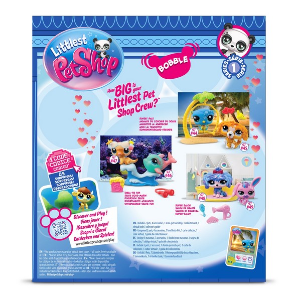 Remek hírünk van a kultikus Littlest Pet Shop állatkák összes rajongója számára! Végre megjelent a bájos, nagy fejecskéjű figurák 7. nemzedéke. Gyűjtsd össze az új állatka-kollekciót, és benne a több mint 65 új barátot az 1. szériából. Bemutatjuk a teljesen új influenszer-állat párokat! Csatlakozz a kutyushoz és a nyuszihoz, hogy egy napot szépségápolással és szépészeti beavatkozásokkal tölts a SzuperSzalonban. Ismerd meg a 3. és 4. szintű állatok kivételes személyiségét és ritkasági szintjét! Használd fel instagramos hátteredet egy fotózáshoz, és oszd meg kreativitásodat az ismerőseiddel és az egész világgal! Csatlakozz a Littlest Pet Shop virtuális világához! Használd a kódot, amelyet az érmén találsz, hogy exkluzív állatkákat oldj fel, meglepetéseket fedezz fel és belevágj egy különleges kalandba e bájos figurák új nemzedékével! Keresd a duplacsomag két további darabját (külön kapható): a Szuper Szalont, Víz alatti kalandot! Minden készlet tartalmaz: 2 állatka, 4 kiegészítő, 1 instagram-háttér, 1 gyűjtőkártya, 1 virtuális kód, 1 gyűjtői útmutató. Az LPS-ről: Gyűjtsd össze a nagy fejecskéjű állatkák új kollekcióját, köztük több mint 65 új, nagyszerű barátot az 1. szériából. A panda, a cica, az axolotl, a hangyász és sok más állat szívesen lesz az új barátod! A gyűjtőkártyák még több mókát hoznak: Használd a gyűjtőkártyát, hogy megismerj minden bájos állatkát, kivételes személyiségét, fajtáját és ritkasági fokát. Virtuális játék: Csatlakozz virtuális játékunkhoz! Az érmén található kód segítségével kivételes meglepetéseket és virtuális állatokat oldhatsz fel. Tudj meg többet, és látogass el oldalunkra: littlestpetshop.com/roblox.