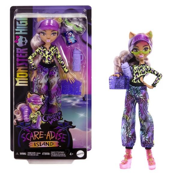 A Monster High világában egy tengerparti nyaralás is rémesen menő lehet. A Scareadise sorozatban szereplő babák hátborzongatóan csinos öltözékben érkeznek vakációzni. Cawdeen baba párducmintás fürdőruhában, strandnadrágban és rém csinos napellenzőben mutatja meg egyedi stílusát. A számos tematikus kiegészítő, mint a nyári táska vagy a kulacs szörnyen csúcs történeteket inspirálhatnak. A sorozat többi, külön kapható babájával együtt még szellemesebb történetek játszhatók el Scaredise sziget partjain. A babák teste sok ponton hajlítható, így még élethűbb pózokat vehetnek fel. A babák külön kaphatók, nem állnak meg maguktól és elérhetőségük változhat. A színek és díszítések eltérhetnek. 4 éves kortól ajánljuk.