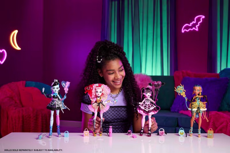 A Monster High világában egy születésnapi parti csak rém menő lehet. A Misztikus Mulatság sorozatban szereplő babák hátborzongatóan csinos öltözékben érkeznek megünnepelni Draculaura ezerhatszázadik születésnapját. Draculaura baba a mulattságon pókhálós öltözékben, fejdíszben, legyezővel, táskával, léggömbbel, és további szellemes kiegészítőkkel mutatja meg egyedi stílusát. A borzasztóan divatos, tematikus kiegészítőik szuper történeteket inspirálhatnak. A sorozatban kapható többi babával együtt még fantasztikusabb történetek játszhatók el Monster High világában. A babák teste sok ponton hajlítható, így még élethűbb pózokat vehetnek fel. A babák külön kaphatók, nem állnak meg maguktól és elérhetőségük változhat. A színek és díszítések eltérhetnek. 4 éves kortól ajánljuk.