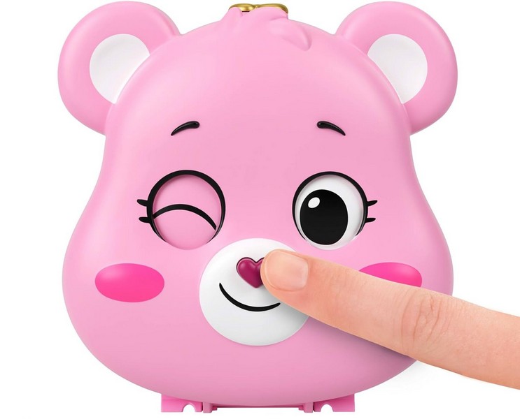 Polly Pocket világában minden apróság nagy meglepetéseket tartogat és most elrepítheti a gyerekek képzeletét a Gondos Bocsok világába. Ez az imádnivaló készlet elég kicsi ahhoz, hogy összecsukva a gyerekek bárhová magukkal vihessék, mégis elég nagy, hogy órákig játszhassanak vele. Az imádnivaló mackófej formájú készlet nóziját megnyomva vidáman kacsint, ami önmagában is szórakoztató. Kinyitva pedig telis-tele vannak felfedeznivaló tematikus meglepetésekkel és édes kiegészítőkkel. Egy baba, két gondos bocs, mozgatható elemek és számos kiegészítő inspirálhatja a végtelen történetmesélést. A gyerekek liftezhetnek, szivárvány autózhatnak, a történeteknek csak a képzeletük szabhat határt. Több készlettel pedig még nagyobb Polly Pocket mini világ építhető. A készletek külön kaphatók és elérhetőségük változhat. 4 éves kortól ajánljuk. A színek és díszítések eltérhetnek.