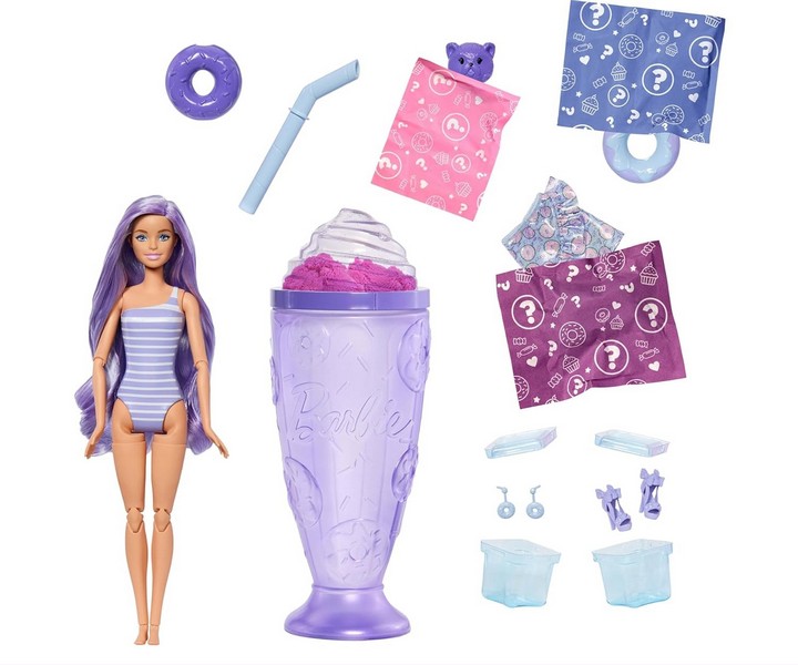 A Barbie Slime Reveal Illatos Shaker babákkal a meglepetések új, stílusos szintre lépnek! Már a kicsomagolás is a móka része: a kupak belsejéből formázható homokgyúrma, a pohárból pedig egy csodás baba bukkan elő, jégkocka formába és mintás tasakba csomagolt meglepetés kiegészítőkkel. A játék része, hogy a jégkockák kipukkaszthatók és újrahasználhatók. A lila baba illatos, élénk szem- és hajszínnel, és egyedi bőrtónussal rendelkezik, testrészei számos helyen mozgathatók, így mindig az elképzelt történet szerinti szuper pózokba állítható. De vajon melyik Barbie babát rejti a csomag? A meglepetés kiegészítők között egy finom illatú kiskedvenc, játék finomság és tematikus tárgyak is rejtőznek. Meleg és jéghideg víz használatával újra és újra megváltoztatható a baba kinézete. Ha elkészült a baba, indulhat is a játék. A shakerpohár tökéletes tároló, melyben a baba mellett a kiegészítők is elférnek. A készlet egy Barbie Slime Reveal Illatos Shaker lila babát és a kiegészítőket tartalmazza. A sorozatban kapható további készletekkel még édesebb történetek játszhatók el. A további készletek külön kaphatók és elérhetőségük változhat. A baba nem áll meg magától. A színek és díszítések eltérhetnek. 3 éves kortól ajánljuk.