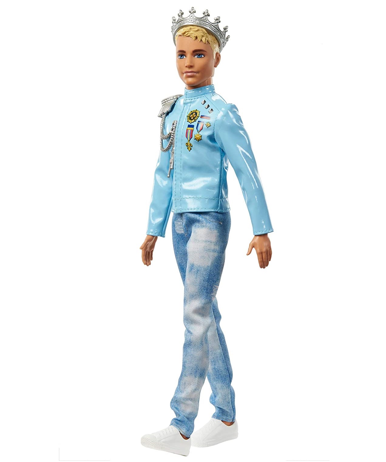 A Princess Adventure inspirálta új, önálló játéksorozatban Ken valódi, trendi hercegként érkezik egyenesen a Barbie™ Dreamhouse Adventures világából. Igazi hercegi dzsekit visel menő ezüstösen csillogó válldísszel, hozzá pedig világos farmert és elegáns sportcipőt választott. A korona pedig valóban felteszi a koronát a nemesi megjelenésére. A Matteltől.