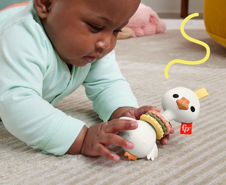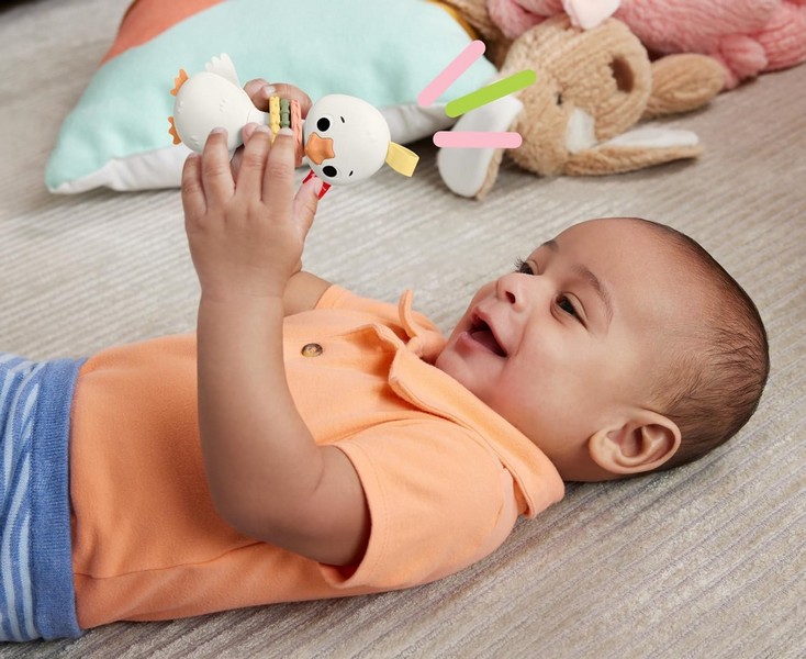 A Fisher-Price Sensimals babapajtik 2024 sorozata fantasztikus kalandra hívja a legkisebbeket az érzékelés világába. Minden állatpajti más-más felfedeznivalót kínál. A rágoka nyuszi BPA mentes műanyagból és szatén fülekkel, az axolotl gyöngyökkel ellátott csörgővel, a liba pedig kattogó gyűrűkkel szórakoztatja a legkisebbeket. A sorozat mérte és formája ideális az apró kezekhez, így a kicsik könnyen megfoghatják őket. A fejlesztés is lehet játék: A csörgők fejlesztik a kézügyességet és a szem- kéz koordinációt, miközben a különböző anyagok, hangok és színek fejlesztik a kicsik taktilis, auditív és vizuális érzékeit. A játékok külön kaphatók, elérhetőségük változhat.