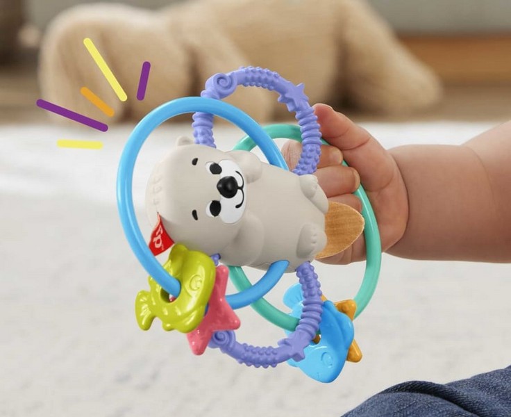 A babák imádnak csörgőzni és rágcsálni, a Fisher-Price Sensimals Vidrás rágóka pedig imádja, ha rázzák és rágcsálják. Csak kezébe veszi a kicsi és kezdődhet is a csörgő rágóka-móka. A játék rugalmas gyűrűit a kis kezek könnyen megragadhatják, megrázhatják és csavargathatják, így a vidra hosszú időre lefoglalhatja a figyelmüket. A BPA-mentes, mintás fogógyűrűk, a halak és csillagok rágcsálása segít a fogzáskor, a rázással pedig vidám hangokkal jutalmazzák a baba ügyességét észrevétlenül fejlesztve finommotoros készségét, nagymozgásait, érzékelését és a szem-kéz koordinációt.