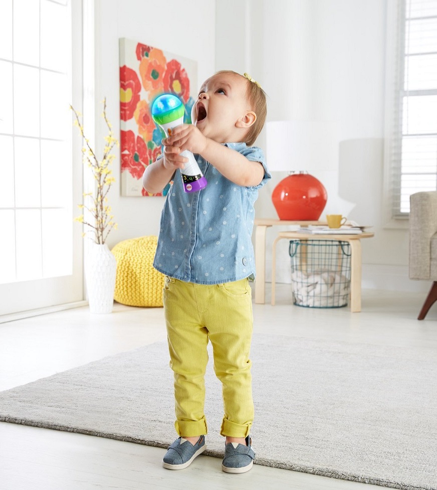 Anyuka életre keltheti a kicsi sztárságról szőtt álmait a Fisher-Price Tanuló mikrofonnal! Akár hangosan énekel, és felveszi a saját hangját, akár együtt énekel a Kutyus (Puppy)vidám tanulódalocskáival, a kicsi szenzációs koncertet csaphat ezzel a menő mikrofonnal. Karaoke vagány tanulócsavarral! Miközben a kicsi a Kutyus dalait énekli, tanul is - az ABC betűit, a számokat 1-től 20-ig, összetettebb színeket és ellentétpárokat! "A fejem, a vállam, a térdem, a bokám..." A színes, "táncoló" fények még tovább fokozzák az izgalmakat. Ha pedig a sztártanonc szeretné felvenni a saját koncertjét, elég megnyomni a Kutyus gombot, és kezdődhet az éneklés! Playback módban vicces hangszínváltoztató effektek és új ütemek is hozzáadhatók! A kicsi ne feledkezzen meg a cuki táncmozdulatokról sem! Anyuka előkészítheti a pattogatott kukoricát - az apró rocksztár koncertje hamarosan kezdődik. Színre lépnek az apró tudósok Számolás és színek: A kicsi a Kutyussal együtt dalolva egészen 20-ig el tud számolni! A tipegő összetettebb színeket is felfedez a vidám dalokon keresztül, miközben a mikrofon olyan fénnyel világít, amiről a dal szól! Betűk és ellentétpárok: A tipegő szívesen énekli el az ABC-dalt a Kutyussal. Az ismerős dallam szövege ráadásul ellentétpárokat mutat be neki! A Matteltől.
