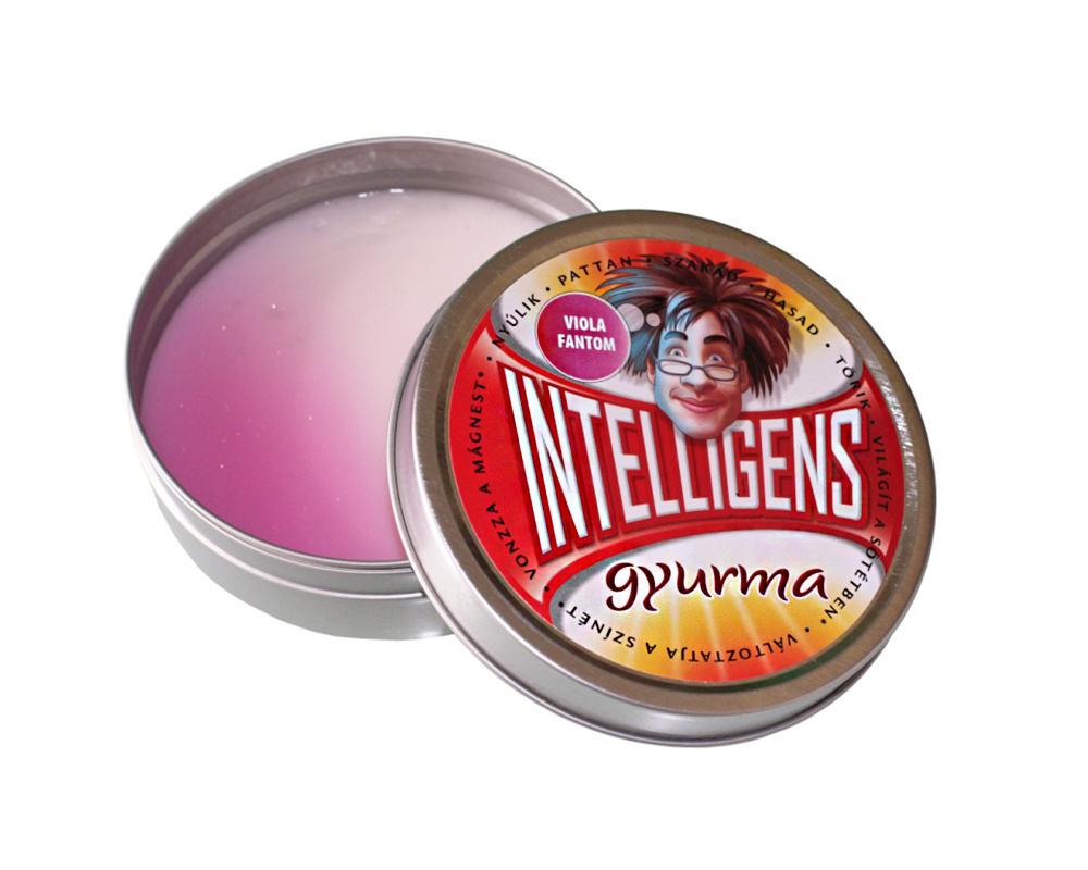 Az intelligens gyurma egy speciális anyagból készült különleges termék, melyet az USA-ban fedeztek fel a II. világháború idején. Bár ipari felhasználására nem került sor, hihetetlen fizikai tulajdonságai miatt népszerűsége a mai napig folyamatosan nő. Különlegességét az adja, hogy különböző anyagok fizikai tulajdonságait ötvözi, ráadásul hosszú távon használható anélkül, hogy tönkremenne. Speciális változatai mágnesesek, vagy világítanak. - Ha finom mozdulatokat használsz, akkor könnyedén formázható- nyújtható, mint a hagyományos gyurma, és nem hagy nyomot a kezeden. - Ha gömböt formálsz belőle és hirtelen kemény felülettel érintkezik (például lepattintod), akkor gumilabdaként visszaugrik. - Ha hirtelen egy sík mentén ellentétesen mozgatod a két oldalát, akkor papírként szakad. - Ha pedig nagyon erős behatás éri, például egy kalapács ütése, akkor apró darabokra törik, akár egy üveggolyó. Ezek a jellemzők számos felhasználási lehetőséget kínálnak. Az egyszerű szórakozás és a kíváncsiságod kielégítése mellett olyan gyakorlati funkcióikat is meg kell említeni, mint a stressz oldása vagy a kézügyesség és kreativitás fejlesztése.Igazán találó nevet találtak ennek az Intelligens gyurmának, mely az éjszaka teremtményeként ragyogó lila színnel ragyogja be a sötétséget. Fehér alapszínnel rendelkezik, ami fény hatására feltöltődik, majd szemkápráztatóan világít. A feltöltéshez bármilyen fényforrás megfelel, de ehhez a modellhez tartozik egy praktikus fekete fény kulcstartó, amivel maximális hatást érhetsz el, sőt különböző alakzatokat is festhetsz vele a gyurmára.