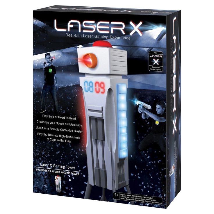 Laser-X játéktorony Laser-X fegyverhez. A játéktorony 10 módja közül válogathatnak a gyerekek, így garantált a szórakozás. A toronnyal egyedül, vagy akár párban lehet játszani. Érzékeli a találatokat, számolja őket és vissza is lő. Hatótávolsága: 30 m. A torony infravörös sugarat bocsájt ki magából, nem igazi lézert! A csomagolás fegyvert nem tartalmaz. A játék működéséhez 3 db AAA elem (ceruza elem) szükséges, amit a csomagolás nem tartalmaz. Csomagolás méretei: 33 x 25 x 11 cm.