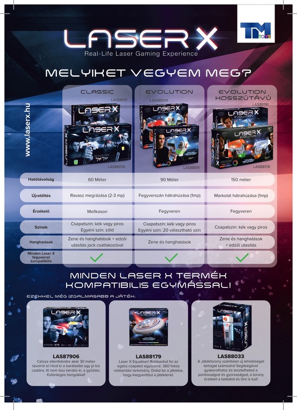Laser-X játéktorony Laser-X fegyverhez. A játéktorony 10 módja közül válogathatnak a gyerekek, így garantált a szórakozás. A toronnyal egyedül, vagy akár párban lehet játszani. Érzékeli a találatokat, számolja őket és vissza is   ...    Részletek