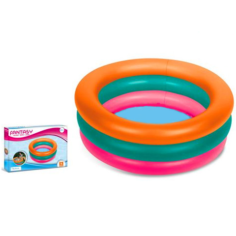 Háromgyűrűs medence, anyaga strapabíró vinyl anyagból készült és élénk színekkel díszített, hogy még vidámabb legyen a pancsolás élménye. Ideális választás a legkisebb gyermekek számára is, hiszen gyorsan és könnyen fel lehet fújni, nem igényel túl sok vizet a feltöltés, a felfújható puha alsó résznek köszönhetően nagyon kényelmes lesz a picik számára.