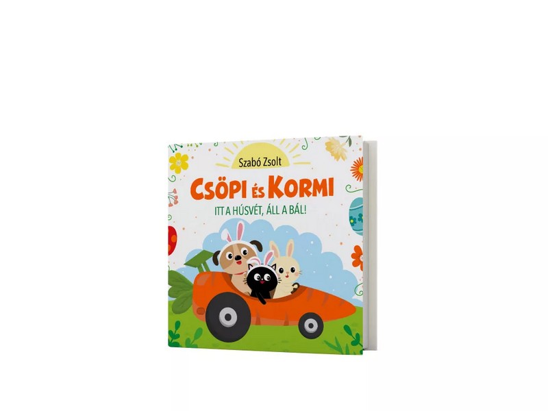 Csöpi, a kíváncsi kutyus és Kormi, a találékony cica ezúttal a húsvét varázslatos világába kalauzolja el a gyerekeket. Egy félreértésből induló kaland során találkoznak a húsvéti nyuszival, segítenek neki a csokitojások „elrejtésében”, és közben megtanulják, mit jelent az együttműködés, a figyelmesség és az ünnep igazi öröme. Kedves, humoros történet a barátságról, a segítőkészségről és a húsvéti hagyományokról, amely tökéletes választás közös esti meséléshez. Szalay Könyvkiadó. Kötés: keménytáblás. Megjelenés: 2026. Oldalak szám: 24. Méret: 165x165 mm.