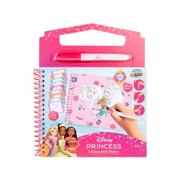 Disney Princess Vízzel Színezve készlet kreatív és varázslatos szórakozást nyújt a gyerekeknek. A varázstollat csak meg kell tölteni vízzel, és már indulhat is a színezés! A gyerekek együtt színezhetnek kedvenc hercegnőikkel, és mesés kalandokat élhetnek át közben. A könyv 10 darab rajzot tartalmaz, amik ha megszáradtak újraszínezhetők. Csomagolás mérete: 24 x 2 x 20 cm