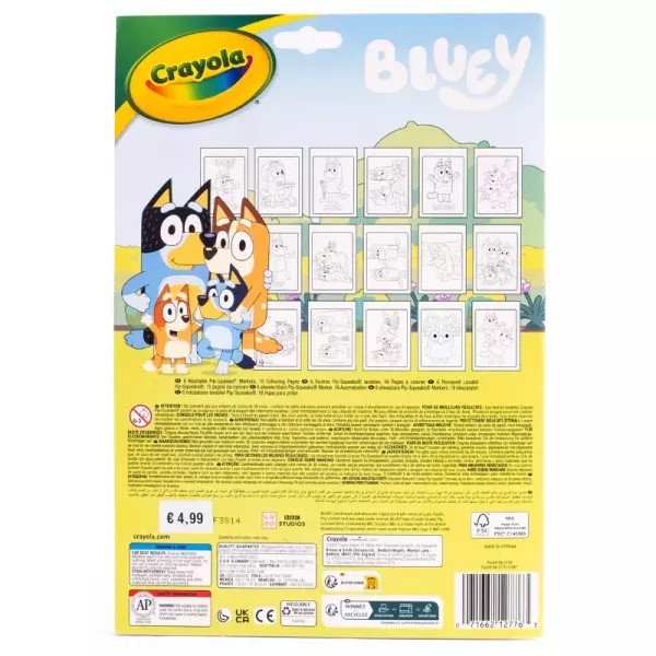 A kicsik alkotás közben ismerkedhetnek meg a számokkal - méghozzá úgy, hogy végeredményben egy színes, vidám rajzot kapnak. A csomagban található filctollak segítségével minden lap kiszínezhető. A filceket kifejezetten a pici kezekre tervezték. Ha a termékeket a gyermek véletlenül a szájába veszi vagy összemaszatolja magát, aggodalomra semmi ok. A Crayola termékek veszélyes, káros anyagot nem tartalmaznak! Csomagolás mérete: 11 x 28 x 2 cm. Tartalom: 16 db színező, 6 db filctoll. Engedd, hogy a Bluey világának varázsa elragadjon ezzel a különleges készlettel! Az életvidám Bluey, hatéves, kék kölyök pásztorkutya, aki tele van energiával és képzelőerővel, most készen áll, hogy új történeteket meséljen a gyerekeknek és a rajongóknak egyaránt. Ez a szett tökéletes ajándék mindazoknak, akik szeretnék megragadni a Bluey család játékos szellemét.
