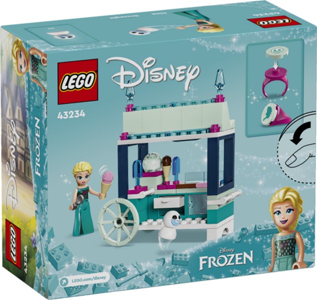 Ejtsd rabul a Disney-rajongókat és az 5 éves vagy annál nagyobb gyermekeket a LEGO® ǀ Disney Jégvarázs Elza jeges finomságai (43234) építőjátékszettel! A doboz tartalmaz egy megépíthető fagyis kocsit, egy fagylaltkészítőt, 2 fagylaltot, 2 jégkrémet és még sok más történetindítót. Tartalmaz egy Elza LEGO ǀ Disney minibaba-figurát és egy hógolyhó LEGO ǀ Disney figurát, hogy elindulhasson a játék, sőt, a szett része még 2 gyűjthető gyűrű is cserélgethető díszítéssel. Ez a magával ragadó játék építőkészlet segít a gyerekeknek növelni az önbizalmukat a kreatív történetmesélés segítségével, és teljesíti a gyermekek vágyát, hogy a tündérmesés álmuk valóra váljon. Tökéletesen megfelel a mindennapos, rövid játékalkalmakra, de kombinálható a sorozat más LEGO építőkészleteivel is (külön kaphatók), hogy még több legyen a játék. A digitális élmény érdekében a gyermekek könnyű és intuitív építési kalandban vehetnek részt a LEGO Builder appban. Felnagyíthatják, 3D-ben elforgathatják a modelleket, készleteket menthetnek el, és követhetik a haladásukat.