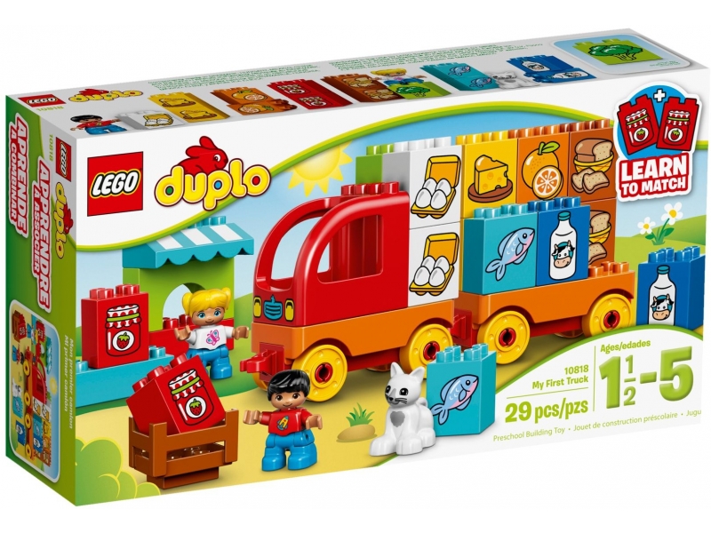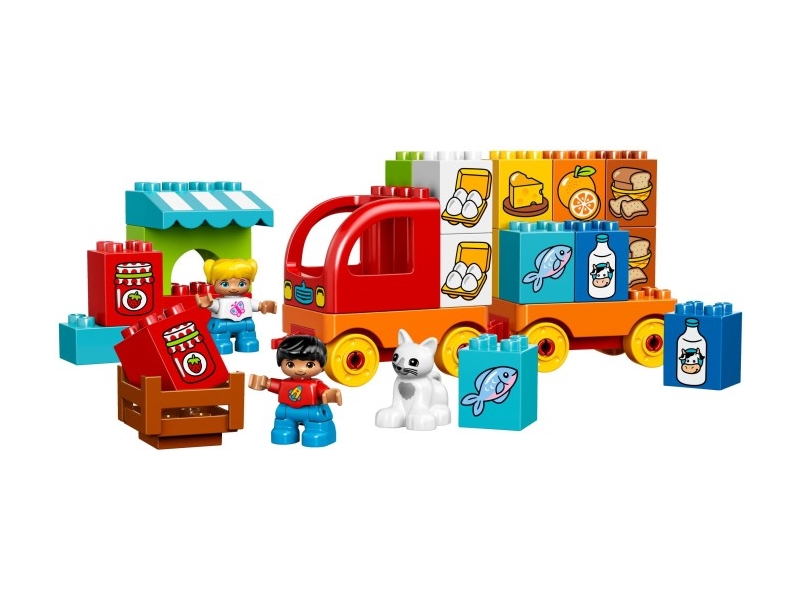 Segíts gyermekednek megtanulni, hogyan alkosson párokat a LEGO® DUPLO® Első teherautóm szettel! A tömzsi DUPLO elemekkel a teherautó könnyen megépíthető, és úgy tervezték, hogy szórakoztató és biztonságos legyen az apró kezekben. A szett tartalmaz 8 pár színes, étellel dekorált elemet is, amelyek tökéletesen használhatók párosításhoz vagy memóriajátékokban. Egy piaci pult is van a készletben, amely sokféle szerepjáték lehetőséget kínál. A dobozban 2 gyermek DUPLO figurát és egy cicát találsz.