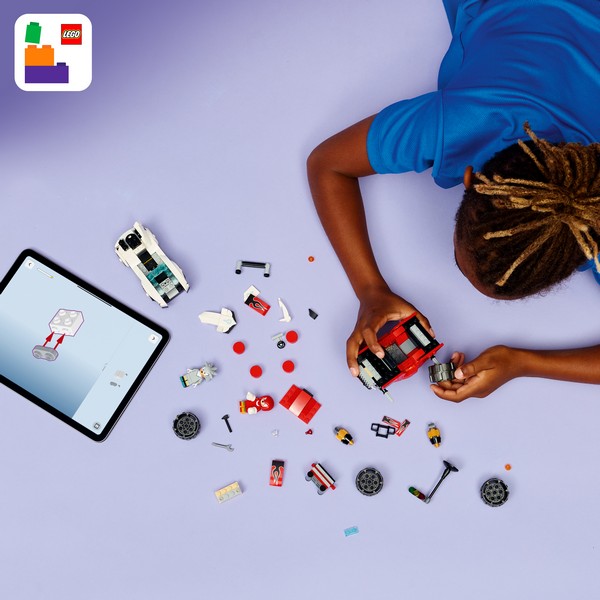 Versenyzős kalandok várják a 8 éves vagy nagyobb gyerekeket a videójátékon alapuló LEGO® Sonic the Hedgehog™ Silver autója Knuckles monster truckja ellen (77118) építőjátékkal. A Sonic Racing: CrossWorlds videójáték alapján a versenyautó-rajongók és a gaming rajongók elképzelhetik, hogy Knucklesszal és a most először megjelenő Silver the Hedgehog minifigurával versenyeznek, hogy kiderüljön, ki nyer. Ez a gyűjthető, videójátékon alapuló LEGO játékkészlet 2 darab, piros és fehér Káosz Smaragdot tartalmaz, amelyek a szerszámosláda tetején találhatók, továbbá egy jelzőlámpa és több szerszám hívja fantáziadús játékra a gyerekeket. Ez a versenyautót és monster truckot tartalmazó építőjáték szórakoztató születésnapi meglepetés vagy gamerajándék lehet, hiszen a gyerekek kiélhetik vele a járművek és akciódús kalandok iránti rajongásukat. Kombináld a választék többi LEGO Sonic the Hedgehog™ építőkészletével (külön kaphatók), hogy még több akcióban legyen részed! A gyerekek magabiztosan építhetnek a LEGO Builder appal, hiszen az alkalmazásban 3D-s útmutatókkal nagyíthatják fel és forgathatják el a szetteket, miközben elmenthetik és nyomon követhetik a haladásukat is. A szett 378 elemből áll.