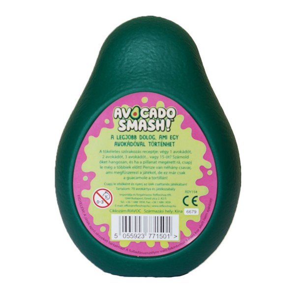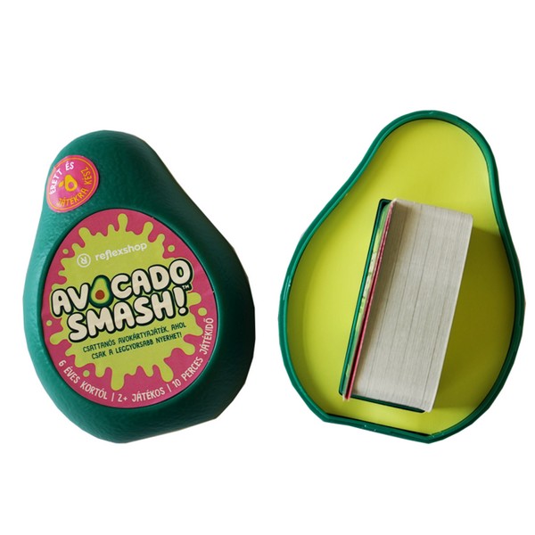Szabadulj meg az avokádóktól ebben a vidám csapkodós gyorsasági játékban! A tökéletes szórakozás receptje: végy 1 avokádót, 2 avokádót, 3 avokádót... vagy 15-öt? Számold őket hangosan, és ha a pillanat megérett rá, csapj le még a többiek előtt! A játék elején a kártyákat meg kell keverni, majd egyenlően szét kell osztani a játékosok között. A játékosok képpel lefelé fordítva maguk elé rakják a paklijukat, majd egyesével fordítják fel a kártyáikat az asztal közepére, és hangosan számolnak 15-ig (“egy avokádó”, “két avokádó”, stb). Néhány különleges esetben a játékosoknak a már lerakott kártyák paklijára kell csapni, aki utolsónak csap középre, annak fel kell vennie az addig lerakott kártyákat. Mikor kell középre csapni? - Ha az aktuálisan kimondott szám (a soron következő) és a kártyán látható szám megegyezik, vagy - ha két egymást követő kártyán is ugyanaz a szám szerepel. Ezen kívül különleges kártyák is előidézhetnek középre csapást, vagy megfordíthatják a kört is. Az a játékos, akinek elsőként sikerül leraknia utolsó kártyáját is, megnyeri a játékot.