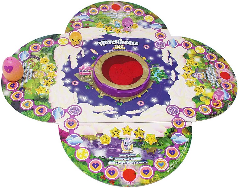 Vidám családi társasjáték kedvenc Hatchimals karaktereiddel. Tartalma: 3 db figura, 1 tojás meglepetés figurával, 1 játéktábla, 4 kártya, játékszabály. Játékosszám: 2-4 fő.