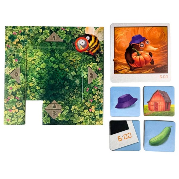 Egy vaksi vakondcsalád költözött a kerted alá, akik véletlenül, de mindig a Te terméseidet viszik el. Felbéreled hát a méhecske barátaidat, hogy kiderítsétek, melyik eltévedt földtúró dézsmálja meg a veteményest. Dolgozzatok össze, zárjátok ki az ártatlanokat, és oldjatok meg minél több rejtély, mielőtt lejár az idő! Valami furcsa történik a veteményesben... Előbb egy répa tűnt el, majd egy karalábé is. A nyomok a föld alá vezetnek. Úgy tűnik, új lakók költöztek a farmra, méghozzá egy egész vakondcsalád. Itt az idő, hogy kiderítsétek, ki a titokzatos zöldségcsenő! A Kerti rejtély egy vidám, közös gondolkodásra épülő nyomozós játék, ahol minden játékos fontos szerepet kap. A dongó segít néhány nyommal, de a végső következtetés már a kis nyomozók feladata. Fejleszti a logikus gondolkodást, a memóriát és az együttműködési készséget, miközben minden kör más, így újra és újra átélhető a nyomozás öröme. Fogjatok össze, használjátok ki a dongó segítségét, és derítsétek ki, ki volt a huncut vakond! A kert nyugalma Rajtatok múlik! A Kerti rejtély egy igazi családi kedvenc azoknak, akik szeretnek együtt ötletelni, következtetni és közösen rájönni a megoldásra. Minden kör új kihívást tartogat, a siker pedig azon múlik, mennyire figyeltek egymásra és a legapróbb részletekre. A játék fokozatosan bontakozik ki, miközben egyre jobban belemerültök a logikai láncolatok és összefüggések világába. Egyszerre szórakoztató és gondolkodtató – a gyerekek és felnőttek egyformán élvezhetik a közös nyomozást, ahol a csapatmunka legalább olyan fontos, mint a megfigyelés. Tökéletes választás családi estékhez, közös nevetésekhez és apró „aha!” pillanatokhoz. A Kerti rejtély egy nagyszerű társasjáték, 2 - 4 játékos részére, az átlagos játékidő rövid, csak 15 - 20 perc. A társast, 6 éves kortól ajánljuk kipróbálni. Kooperatív jellegű, a játékmenet erősen épít a deduction mechanizmusra.