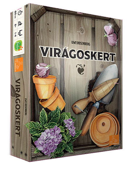 Becsvágyó kertészként a kerted minden ágyását be szeretnéd ültetni, a rendelkezésedre álló terület szűkössége újabb és újabb kompozíciók kitalálására ösztönöz. Különböző növényeket, virágcserepeket és kerti üvegburákat használsz fel, hogy megtervezd a sok színben pompázó kertedet. Uwe Rosenberg bájos játékában a legügyesebb kertész kapja a legtöbb pontot - vajon ki lesz az? Válassz a sorodban lévő, különböző növényeket ábrázoló Tetris-szerű elemek közül, majd rakd le azt valamelyik virágágyásodba! Az üresen marad helyeket virágcseréppel illetve macskákkal pótolhatod ki - és ha valamelyik ágyás teljesen tele van, rögtön megkapod érte a pontjaid! A megszerezhető bónusz-méhkaptár, a sorokat jelző talicska és az elemek próbálgatása alatt helyettesítőként a közös táblára helyezhető napernyő mind fokozzák a játék családbarát, könnyed hangulatát. A Virágoskert kiválóan fejleszti a térlátást és a kombinációs képességeket, a kisebbek számára is élvezetes szórakozás. Legyél te a legügyesebb kertész a Virágoskertben!