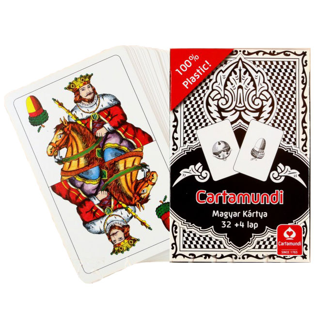 Kiváló minőségű plasztik magyar kártya. A plasztik kártya a papír alapú kártyákkal szemben sokkal hosszabb élettartamú. Nem törik meg, nem foszlik a széle, könnyebben keverhető, vízálló, lemosható.
