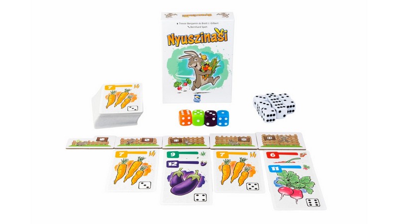 Ugorj be a kertbe és szerezz vacsorára valót a nyuszidnak! Ravasz nyusziként próbálsz minél több friss zöldséget megkaparintani a gazda kertjéből. A kerítés magas, a gazda úton van, a többi nyuszi pedig ugyanarra a zsákmányra hajt. A Nyuszinasi könnyed gyerekjáték, amelyben minden játékos egy-egy nyuszit irányít. A feladat egyszerűnek tűnik: megszerezni minél több ínycsiklandó zöldséget a gazda kertjéből. Csakhogy a magas kerítés és a gazda állandóan fenyegető visszatérése minden döntést izgalmassá tesz. A játék menete gyors és pörgős: eldöntheted, hogy bevállalod az ugrást a kerítésen át, vagy inkább lapítasz, és kivárod a kedvező pillanatot. A többiek is ugyanarra a zsákmányra hajtanak, így folyamatosan mérlegelned kell, mikor éri meg kockáztatni. A játék hangulatát a folyamatos egymásra figyelés, esetleg egymás beugratása és az időzítés adja. Ha szereted a vidám, de feszült pillanatokat, a a kockázat izgalmát és a játékosan csipkelődő interakciót, a Nyuszinasi pont neked való: kompakt, vidám, és csurig van „nyuszis” feszültséggel. Csapj le a zöldségekre – legyél te a legsikeresebb nyuszi! A Nyuszinasi egy nagyon könnyen tanulható társasjáték, 2 - 4 játékos részére, az átlagos játékidő rövid, csak 20 perc. A társast, a könnyebb tanulhatósága miatt, akár már 7 éves kortól ajánljuk kipróbálni. A játékmenet erősen épít a kockadobás mechanizmusra.