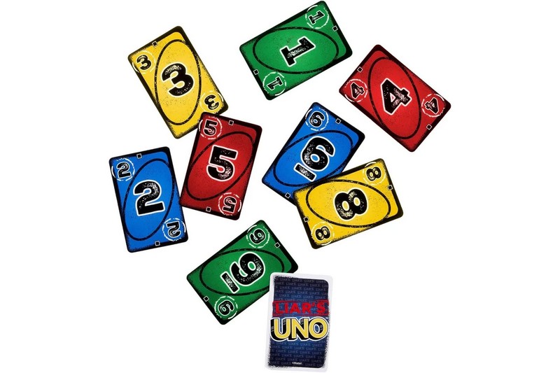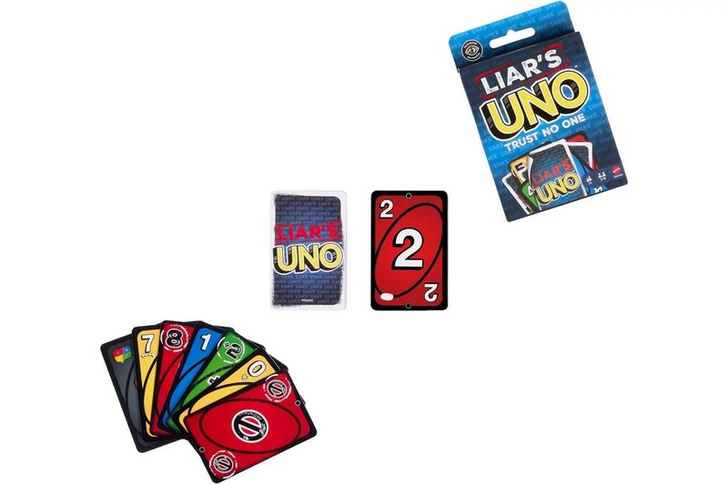 Az UNO Liars a klasszikus kártyajáték talán legszórakoztatóbb változata, ahol a füllentésé a főszerep. Ebben a változatban is az a játékosok célja, hogy megszabaduljanak a kezükben tartott lapoktól. Ehhez figyelni kell, milyen színű és számú kártya van a dobópakli tetején, hiszen csak ahhoz illeszkedő tehető le, kivéve az akciókártyák, a blöff lapok, amiket fejjel lefelé kell kijátszani és elmondani, milyen lapot játszottunk meg. Ha a többi játékos elhiszi a bemondást, folytatódik a játék. Ha azonban valaki kételkedik, megnézheti a lerakott lapot. Ha igaz volt a bemondás, a kihívó kapja a büntetést, de ha elkapták a blöfföt, akkor a füllentő játékos húzza a rövidebbet, vagyis a bütetőlapokat. Ja, és a legfontosabb: Ha valakinek már csak egyetlen lap marad a kezében azonnal kiáltsa: UNO! Szuper ajándék 7 éves kortól. A színek és díszítések eltérhetnek.