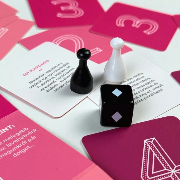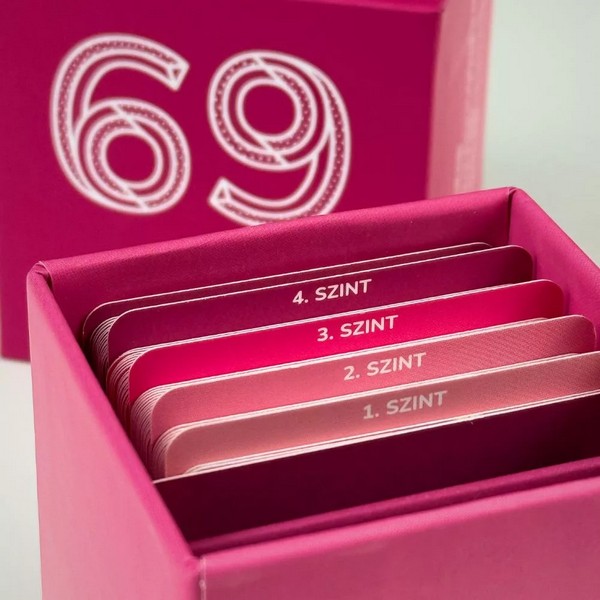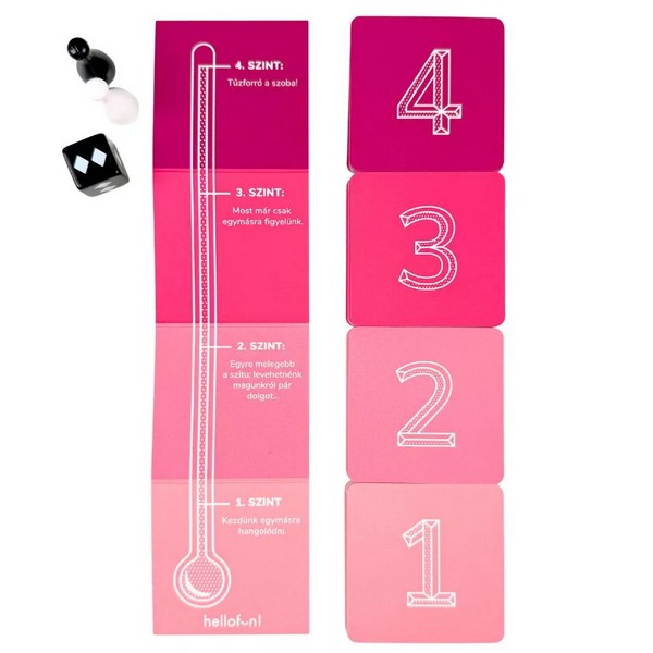 Légy óvatos, ez a játék forróbb, mint gondolnád! A dobozban 69 hangulatfokozó feladatot találtok, de ne feledd, ez nem verseny - ezzel a játékkal mindketten csak nyerhettek. A 69 egy könnyed, fülledt páros játék, ahol a cél nem a győzelem, hanem az egymásra hangolódás. A hőmérő négy fokozata jelzi, mennyire vágtok bele a játékos kihívásokba: az elején még finoman indultok, de ahogy haladtok felfelé, a feladatok egyre merészebbek és forróbbak lesznek. A dobókocka mutatja meg, hol folytatjátok — a többit pedig rátok bízza a játék. Dobjatok a dobókockával, jussatok el a hőmérő csúcsára, közben pedig hajtsátok végre a legfülledtebb feladványokat is, hogy igazán felforrósodjon a hangulat. Az igazi kihívás persze nem a játékban rejlik, hanem hogy kibírjátok egészen a végéig anélkül, hogy az ágyban kötnétek ki. A doboz tartalma: 1 játéktábla, 69 kártya, 1 dobókocka, 2 bábu, 1 játékszabály.