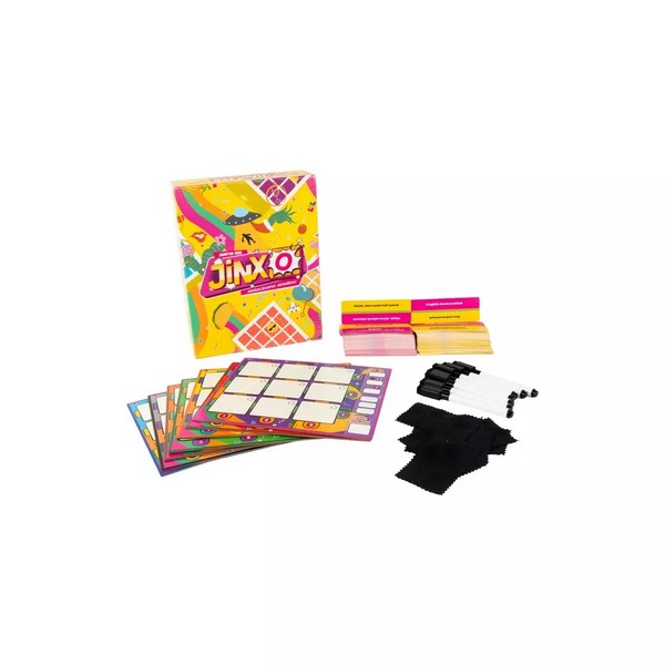 A JinxO pörgős, nevetős partijáték, ahol megadott témákra írt szavakkal gyűjtötök pontokat. A legjobb pillanatok akkor jönnek, amikor kiderül: valaki pont ugyanarra gondolt… vagy épp nagyon nem. Egy játék három témából áll. Minden témánál minden játékos három választ ír, így a végére összesen kilenc szó kerül a saját táblájára. Ezután felolvassátok a válaszokat, és jönnek az egyezések: ha többen ugyanazt a szót írtátok, pontot ér, ha pedig pont ketten gondoltatok ugyanarra, az még többet – ez a klasszikus „Jinx!” pillanat. A szavak egy rácsos táblára kerülnek, ahol a sorok és oszlopok extra bónuszokat adhatnak, így nemcsak az számít, mit írsz, hanem az is, hova kerül. A témák elsőre ártatlannak tűnnek, aztán gyorsan kiderül, mennyi humor van bennük: lehetnek merészebb, kínosabb vagy teljesen hétköznapi felvetések is, a válaszok pedig mindig az asztaltársaságtól válnak igazán viccessé. A játék végén összeszámoljátok a pontokat, és kiderül, ki hozta ki a legtöbbet a közös asszociációkból. Gyors körök, hangos felismerések és rengeteg „én is ezt akartam írni!” pillanat vár rátok. A JinxO könnyed, beszélgetős partijáték, ami gyorsan beindítja a társaságot – és akkor működik a legjobban, ha senki nem veszi túl komolyan. A JinxO egy nagyon könnyen tanulható társasjáték, 4 - 7 játékos részére, az átlagos játékidő rövidebb, csak 30 - 45 perc. A társast, a könnyebb tanulhatósága ellenére, csak 10 éves kortól ajánljuk kipróbálni. A játékmenet erősen épít a szavazás és a bingo mechanizmusokra.