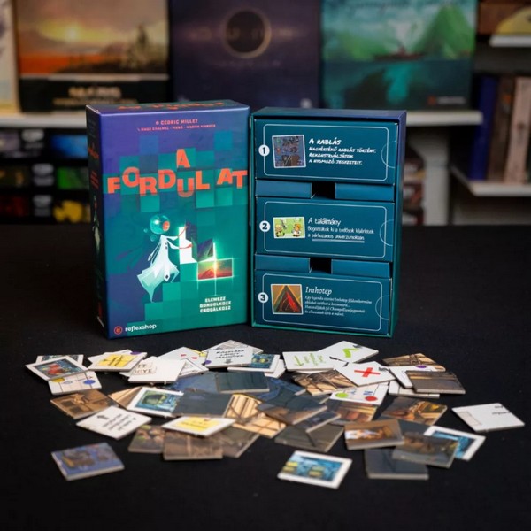 Elemezz, gondolkozz, csodálkozz: 3 világ, 3 rejtély és 3 kirakós vár rád ebben a dedukciós logikai társasjátékban. Ismered azt az érzést, amikor valami nem akar összeállni – aztán hirtelen minden értelmet nyer? A Fordulat pontosan ezt a pillanatot adja át. Egy kooperatív logikai társasjáték, ahol minden döntés és minden apró felfedezés közelebb visz a megoldáshoz. Ahogy egyre több részlet kerül a helyére, lassan kirajzolódik előttetek a teljes kép – és a végén, amikor mindent sikerül összerakni, elérkezik a nagy pillanat: a fordulat, amikor az egész összeáll egyetlen, tökéletes egésszé. Ebben a különleges játékban nem egymás ellen, hanem egymással összhangban kell gondolkodnotok. A cél, hogy a lapkákat úgy helyezzétek el, hogy azokból egy összefüggő, logikus kép szülessen – de az út a megfejtésig tele van apró csavarokkal és félrevezető részletekkel. A nyomkártyák segítenek, ha elakadnátok, de sosem árulják el a megoldást: csak finoman irányítanak, hogy a felismerés öröme a tiétek maradjon. A Fordulat nem csupán egy kirakós, hanem egy közös gondolkodásra épülő kaland, ahol a siker kulcsa az együttműködés, a figyelem és a jó kommunikáció. Minden doboz új történetet és új logikai világot kínál, így újra és újra átélhetitek a felfedezés izgalmát. Tökéletes választás mindazoknak, akik szeretik a fejtörő kihívásokat, a csapatmunkát és az igazi „aha!” élményt. Legyen szó családi estéről, baráti összejövetelről vagy kettesben töltött játékról, A Fordulat minden alkalommal más arcát mutatja – és minden végén ott lesz az elégedett mosoly. Fedezzétek fel együtt, hogyan lesz a káoszból rend – rendeld meg most A Fordulatot, és éljetek át közösen minden meglepő pillanatot! A fordulat egy könnyen tanulható társasjáték, 1 - 99 játékos részére, az átlagos játékidő 45 - 90 perc. A társast, a könnyebb tanulhatósága ellenére, csak 10 éves kortól ajánljuk kipróbálni. Kooperatív jellegű, a játékmenet erősen épít a lapka-elhelyezés, a deduction és a matching mechanizmusokra.