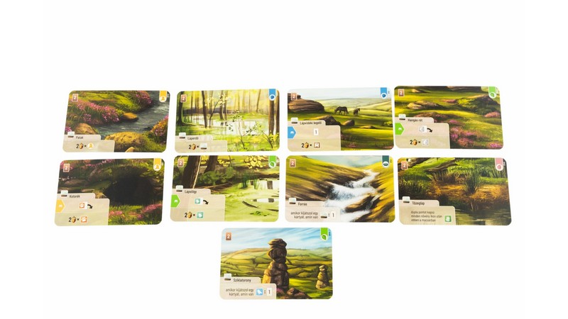 Építsetek gazdag élővilágot Anglia híres Nemzeti Parkjában! Szitakötők és más apró rovarok zümmögve cikáznak legelésző pónilovak és juhok között – alakítsatok ki értékes kapcsolatot a nyílt lápvidék és a mély folyóvölgyek állatai és növényei között! Az Erdő – Dartmoorban Anglia egyik legszebb nemzeti parkjába látogathattok, amely változatos élőhelyet kínál számos növény- és állatfaj számára. Az erdő játékcsalád új, önálló tagjában ezen a szép tájon költöztethettek be állatokat és növényeket, hogy egymással vetélkedve megalkothassátok a legértékesebb ökológiai rendszert! Figyelnetek kell az eltérő fajok igényeire: egyesek szívesen tartózkodnak a fajtársaik közelében, míg mások inkább magányra vágynak, vagy egy meghatározott élőhelyen érzik otthon magukat. A figyelmes szemlélő a levegőben és a sűrű aljnövényzetben egyaránt számtalan élőlényt fedezhet fel. Töltsétek meg élettel Anglia mesés szépségű nemzeti parkját! Az erdő: Dartmoor egy könnyen tanulható társasjáték, 2 - 5 játékos részére, az átlagos játékidő rövidebb, csak 1 óra. A társast, a könnyebb tanulhatósága ellenére, csak 10 éves kortól ajánljuk kipróbálni. A játékmenet erősen épít a kollekció gyűjtés, a pakli tervezés, a kártya húzás, a játék végi bónuszok és a layering mechanizmusokra.