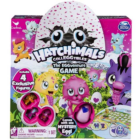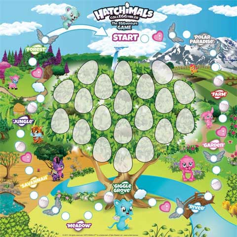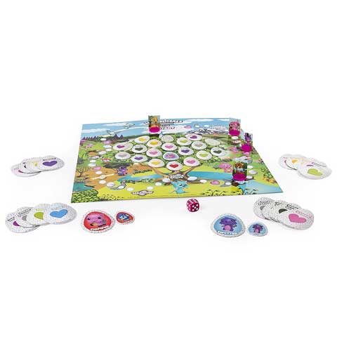 A Hatchimals egyik új játéka a Colleggtibbles társasjátéka téged is elkápráztat majd. A játék már a csomagolásával is felkelti a gyerekek figyelmét, mert 4 db cuki minifigura található benne, és közöttük az egyik meglepetés lesz mert tojásban van. Csak rakd ki az összes tojás alakú kártyát a táblára, a nagy kártyákat meg oszd el annyi felé ahányan vagytok. A játákban a feladat az lesz hogy öszepárosítsd a tábla tojásait a nálad lévő kártyákkal. Rakd a kisbábudat a startra majd azután dobj a dobókockával, és mennj annyit előre ahány pontot mutat a kocka. Ha olyan mezőre érkezel ami névvel van ellátva akkor megfordíthatod az azonos nevű tojás kártyalapot, aminek a párját neked kell megkeresned a nálad lévők között. Az a győztes aki a leggyorsabban összeszedi a legtöbb Hatchimals párt. Csak óvatosan mert nembiztos hogy az a győztes aki a legelőször ér a célba, mert üres mezőre is léphet. A legtöbb párt gyűjtő játékos nyer és a gyorsaság csak akkor számít ha a végén egyenlő a párok mennyisége a játékosok között.