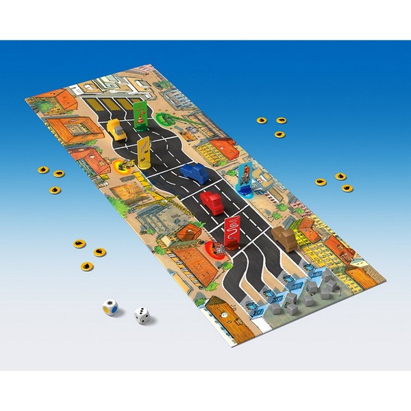 Jonatánt és barátait sürgős szállítással bízták meg. A boltokban már nagyon várják az árut. Vajon melyikük lesz a leggyorsabb? Igyekezniük kell, de, csak óvatosan! Hol egy mentőautó, hogy egy markoló állja el az utat. Fordulatos társasjáték nem csak a „Kerék mesék” rajongóinak. Tartalom: 1 játéktábla, 2 speciális dobókocka, 4 fa teherautó bábu, 9 fa rakomány kocka, 4 akadály kártya, 4 műanyag talp, 12 benzincsepp korong.
