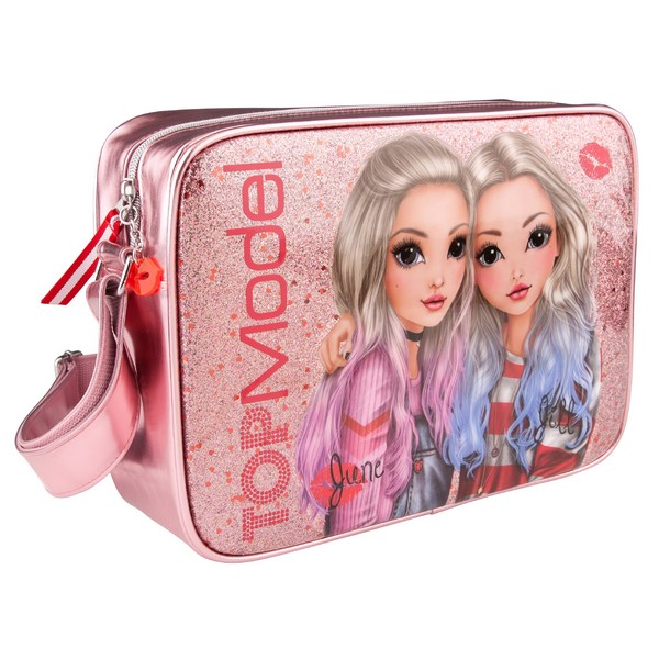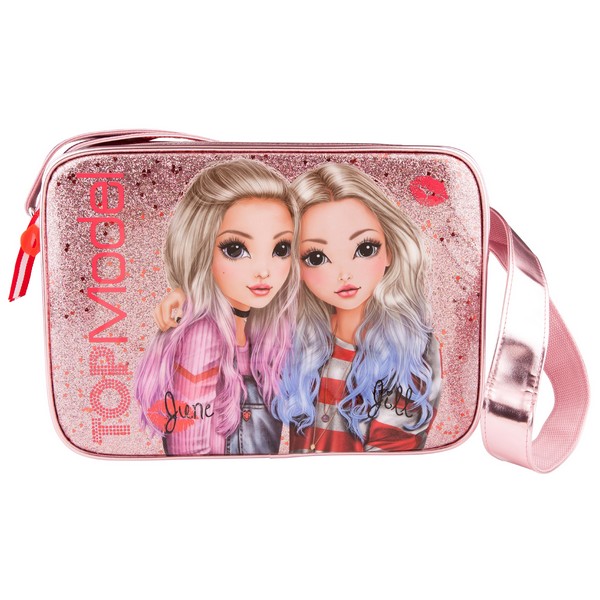 Csajos válltáska glitteres motívummal az elején. Mágneses kapoccsal záródik, egy cipzáros belső zsebet tartalmaz és állítható a vállpántja. Anyaga: 100% poliuretán, az elején 100% PVC, 100% poliészter béléssel. Mérete: kb. 10 x 34 x 24 cm.